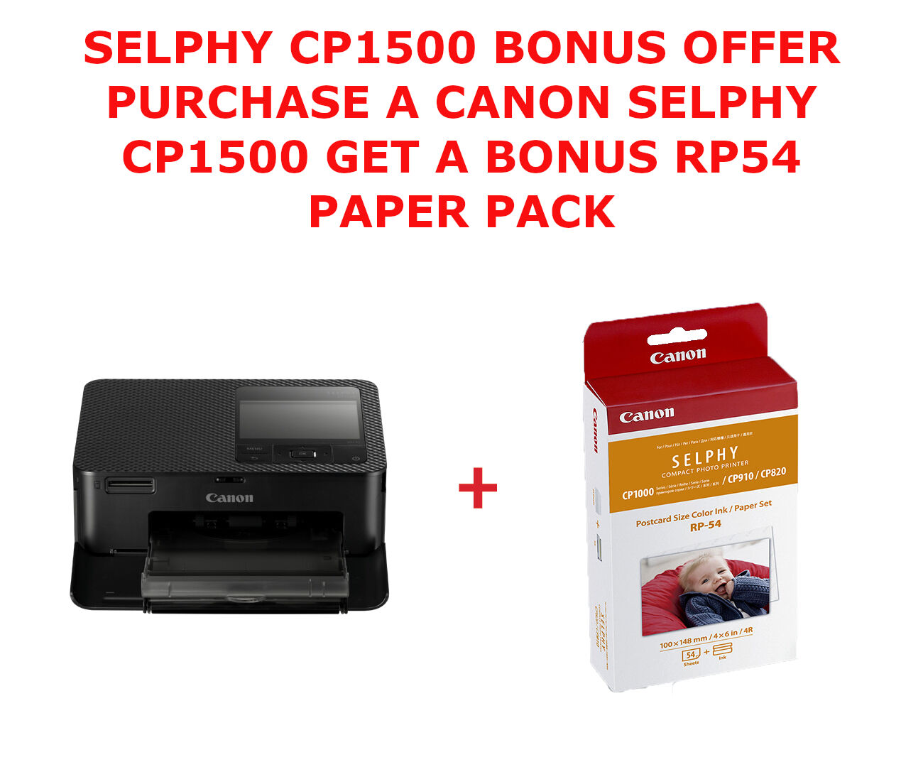 CANON SELPHY CP1500BK BLACK DYE-SUB COMPACT PHOTO PRINTER BONUS RP54 OPIX25 BUNDLE