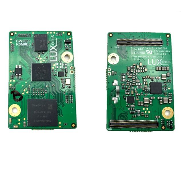 The OAK-SoM-Pro can be used to integrate the power of DepthAI into your own products, leveraging our open source software and hardware. Interfaces with system through two 10-gbps-rated 100-pin connectors. Core digital electronics in the SoM include: Movidius Myriad X VPU, 64 MB QSPI NOR flash, and 32 kb I2C EEPROM. Features: Interfaces with the system through two 10-gbps-rated 100-pin connectors (DF40C-100DP-0.4V(51)) 2 x 2-lane MIPI channels 2 x 4-lane MIPI channels (for multiple camera inputs) USB 3.1 Gen 2 Boot Modes Supported: NOR, eMMC, USB, Ethernet (EEPROM) Dimension: 30x45x4 mm Weight: 5g '
